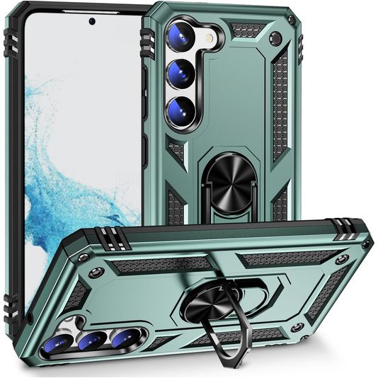 Mobigear Armor Ring Samsung Galaxy S23 Hülle Hardcase Backcover Stoßfest mit Ringhalter - Grün