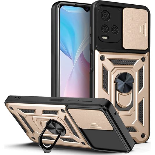 Mobigear Armor Ring Cam Slide Vivo Y21s Hülle Hardcase Backcover Stoßfest mit Ringhalter und Kamera Slider - Gold