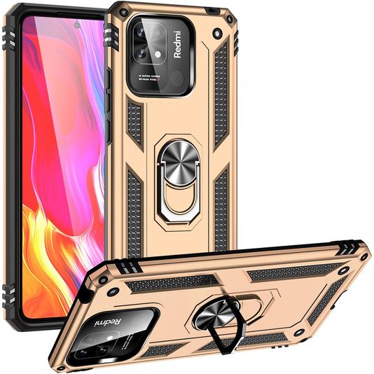 Mobigear Armor Ring Xiaomi Redmi 10C Hülle Hardcase Backcover Stoßfest mit Ringhalter - Gold