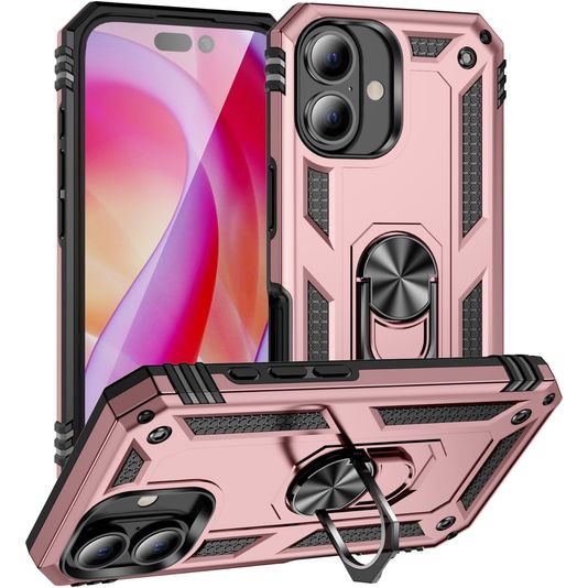 Mobigear Armor Ring iPhone 16 Hülle Hardcase Backcover Stoßfest mit Ringhalter - Roségold