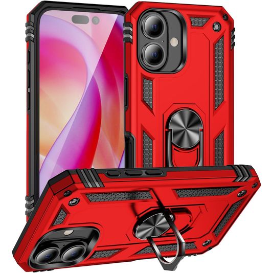 Mobigear Armor Ring iPhone 16 Plus Hülle Hardcase Backcover Stoßfest mit Ringhalter - Rot