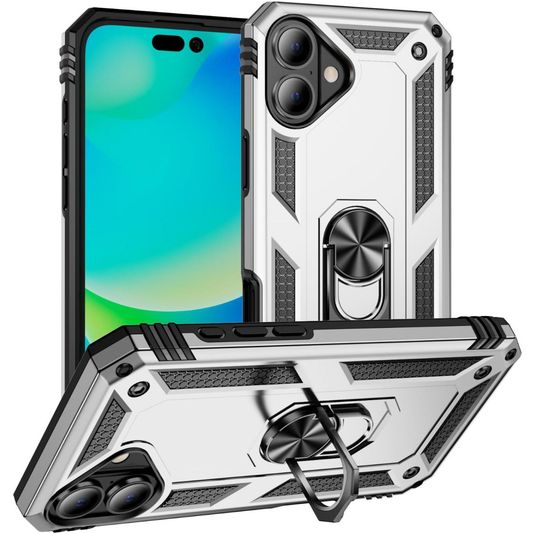 Mobigear Armor Ring iPhone 17 Hülle Hardcase Backcover Stoßfest mit Ringhalter - Silber