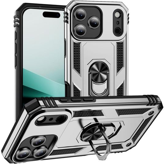 Mobigear Armor Ring iPhone 17 Pro Hülle Hardcase Backcover Stoßfest mit Ringhalter - Silber