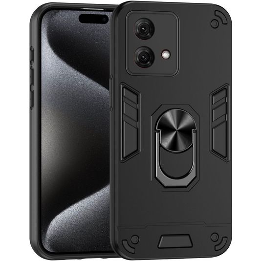 Mobigear Armor Ring Motorola Moto G84 Hülle Hardcase Backcover Stoßfest mit Ringhalter - Schwarz
