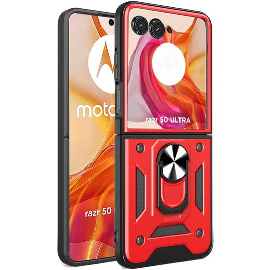 Mobigear Armor Ring Motorola Razr 50 Ultra Hülle Hardcase Backcover Stoßfest mit Ringhalter - Rot