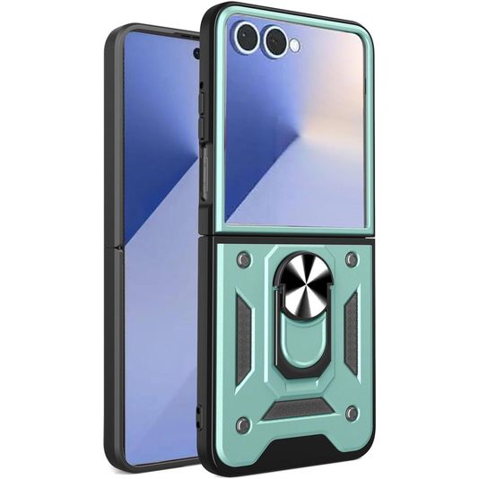 Mobigear Armor Ring Samsung Galaxy Z Flip 7 Hülle Hardcase Backcover Stoßfest mit Ringhalter - Grün