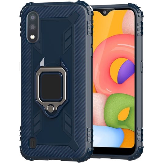 Mobigear Armor Ring Samsung Galaxy A01 Hülle Flexibles TPU Backcover Stoßfest mit Ringhalter - Blau