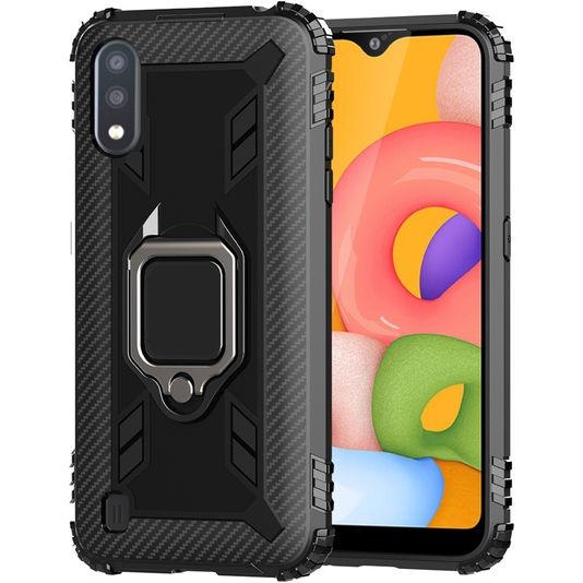 Mobigear Armor Ring Samsung Galaxy A01 Hülle Flexibles TPU Backcover Stoßfest mit Ringhalter - Schwarz
