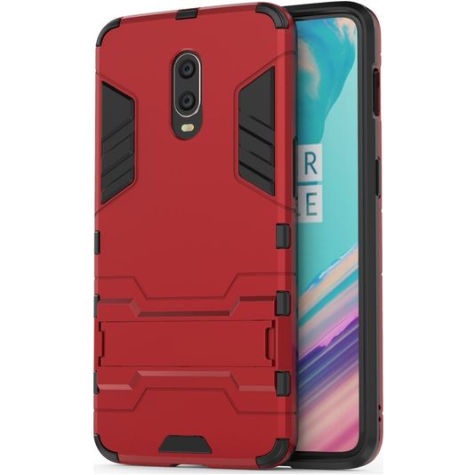 Mobigear Armor Stand OnePlus 6T Hülle Hardcase Backcover Stoßfest mit Ständer - Rot