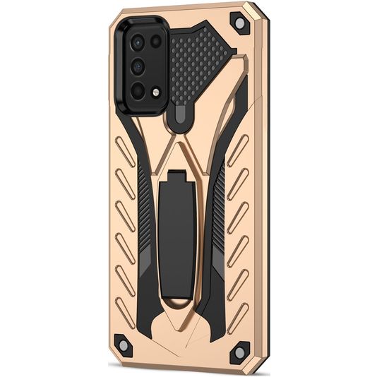 Mobigear Armor Stand Samsung Galaxy A03s Hülle Hardcase Backcover Stoßfest mit Ständer - Gold