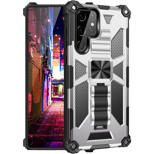 Mobigear Armor Stand Samsung Galaxy S22 Ultra Hülle Hardcase Backcover Stoßfest mit Ständer - Silber