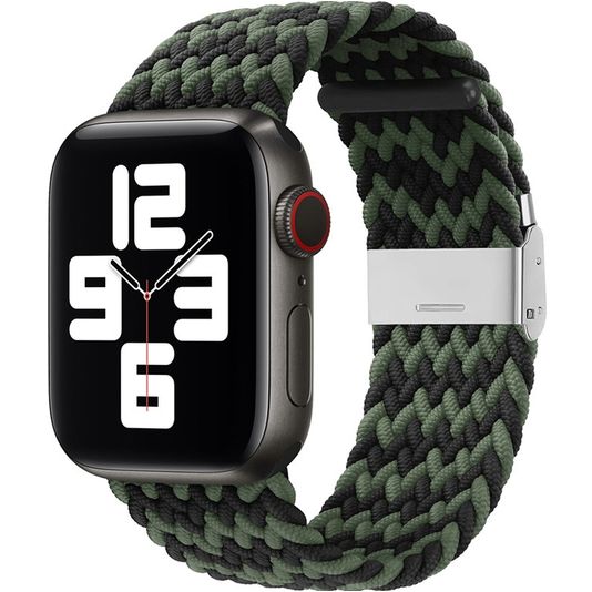 Mobigear Braided Nylon Apple Watch Armband Klappschließe - 49/46/45/44 mm - Schwarz / Grün