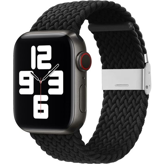 Mobigear Braided Nylon Apple Watch Armband Klappschließe - 49/46/45/44 mm - Schwarz