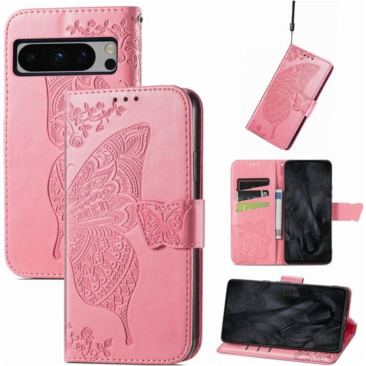 Mobigear Butterfly Google Pixel 8 Pro Hülle Klapphülle Geldbörse - Pink