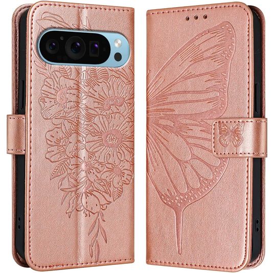 Mobigear Butterfly Google Pixel 9 Pro XL Hülle Klapphülle Geldbörse - Roségold