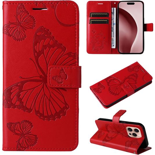 Mobigear Butterfly iPhone 16 Pro Hülle Klapphülle Geldbörse - Rot