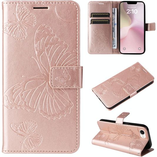 Mobigear Butterfly iPhone 17e Hülle Klapphülle Geldbörse - Roségold