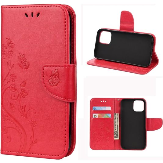 Mobigear Flowers iPhone 12 Mini Hülle Klapphülle Geldbörse - Rot
