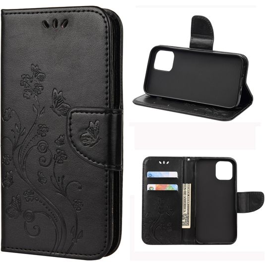 Mobigear Flowers iPhone 12 Pro Hülle Klapphülle Geldbörse - Schwarz