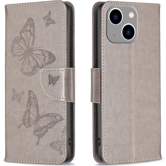 Mobigear Butterfly iPhone 15 Plus Hülle Klapphülle Geldbörse - Grau