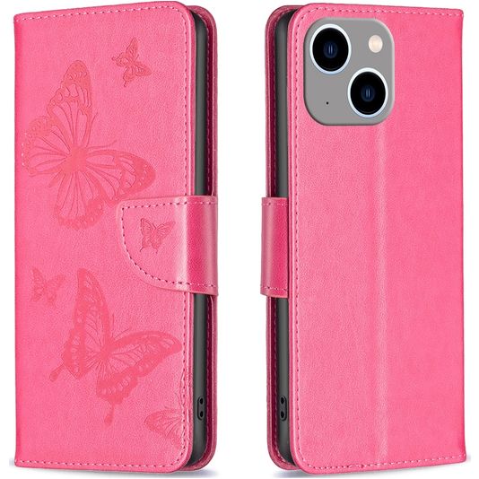Mobigear Butterfly iPhone 15 Plus Hülle Klapphülle Geldbörse - Magenta