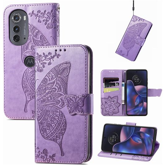 Mobigear Butterfly Motorola Edge (2022) Hülle Klapphülle Geldbörse - Lila