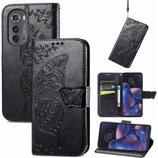 Mobigear Butterfly Motorola Edge (2022) Hülle Klapphülle Geldbörse - Schwarz