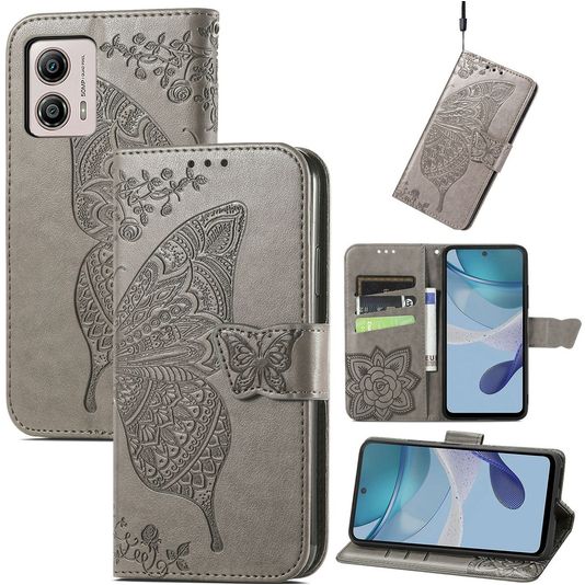 Mobigear Butterfly Motorola Moto E13 Hülle Klapphülle Geldbörse - Grau