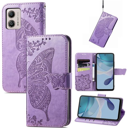 Mobigear Butterfly Motorola Moto E13 Hülle Klapphülle Geldbörse - Lila