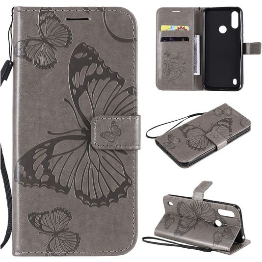 Mobigear Butterfly Motorola Moto E6s (2020) Hülle Klapphülle Geldbörse - Grau