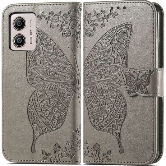 Mobigear Butterfly Motorola Moto G53 5G Hülle Klapphülle Geldbörse - Grau