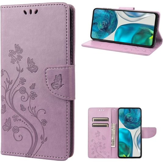 Mobigear Flowers Motorola Moto G82 Hülle Klapphülle Geldbörse - Lila
