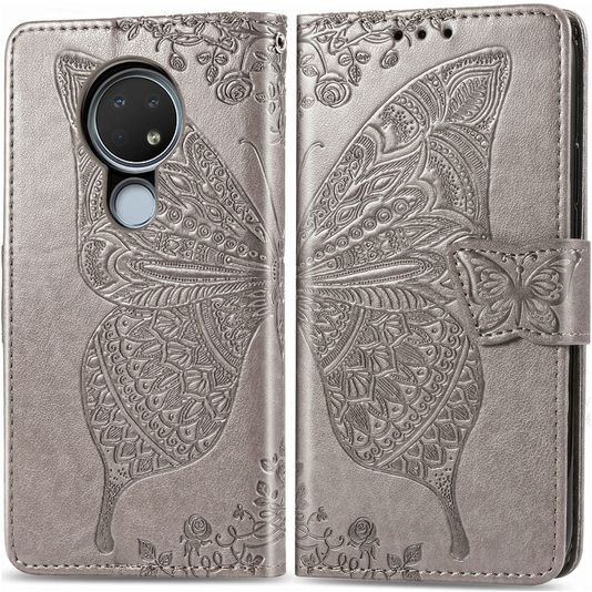 Mobigear Butterfly Nokia 7.2 Hülle Klapphülle Geldbörse - Grau