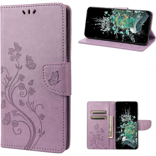 Mobigear Butterfly OnePlus 10T Hülle Klapphülle Geldbörse - Lila