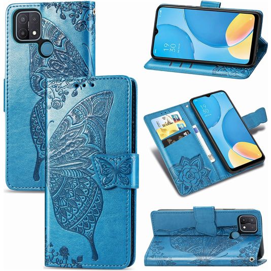 Mobigear Butterfly OPPO A15 Hülle Klapphülle Geldbörse - Blau