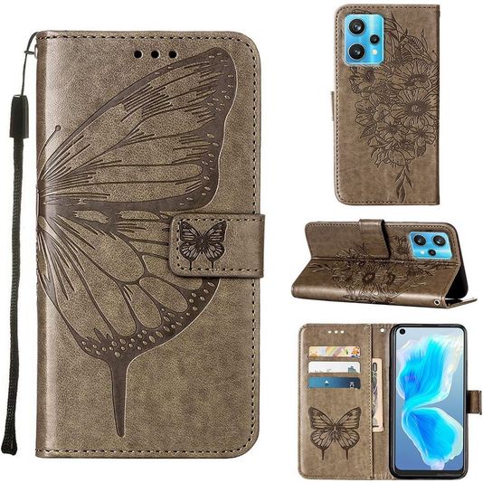 Mobigear Butterfly Realme 9 Pro Plus Hülle Klapphülle Geldbörse - Grau