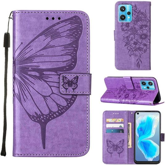 Mobigear Butterfly Realme 9 Pro Plus Hülle Klapphülle Geldbörse - Lila