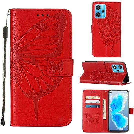 Mobigear Butterfly Realme 9 Pro Plus Hülle Klapphülle Geldbörse - Rot