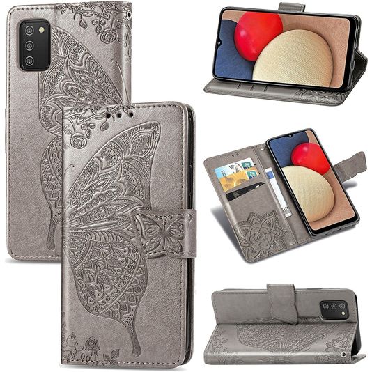 Mobigear Butterfly Samsung Galaxy A03s Hülle Klapphülle Geldbörse - Grau