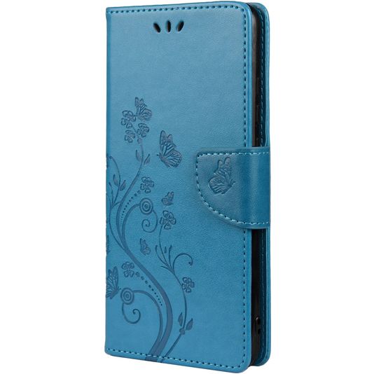 Mobigear Flowers Samsung Galaxy A23 Hülle Klapphülle Geldbörse - Blau