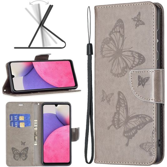 Mobigear Butterfly Samsung Galaxy A33 Hülle Klapphülle Geldbörse - Grau