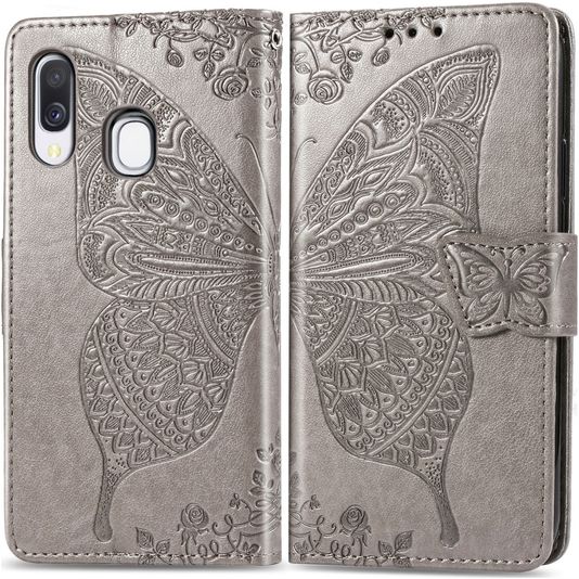 Mobigear Butterfly Samsung Galaxy A40 Hülle Klapphülle Geldbörse - Grau