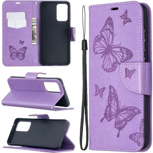 Mobigear Butterfly Samsung Galaxy A52 Hülle Klapphülle Geldbörse - Lila