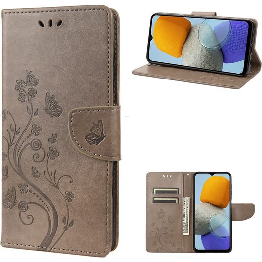 Mobigear Flowers Samsung Galaxy M23 Hülle Klapphülle Geldbörse - Grau