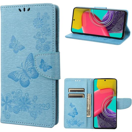Mobigear Butterfly Samsung Galaxy M53 Hülle Klapphülle Geldbörse - Blau