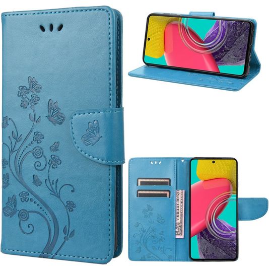 Mobigear Flowers Samsung Galaxy M53 Hülle Klapphülle Geldbörse - Blau