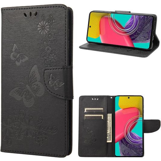 Mobigear Butterfly Samsung Galaxy M53 Hülle Klapphülle Geldbörse - Schwarz