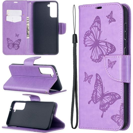 Mobigear Butterfly Samsung Galaxy S21 Plus Hülle Klapphülle Geldbörse - Lila