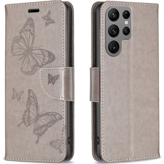 Mobigear Butterfly Samsung Galaxy S23 Ultra Hülle Klapphülle Geldbörse - Grau