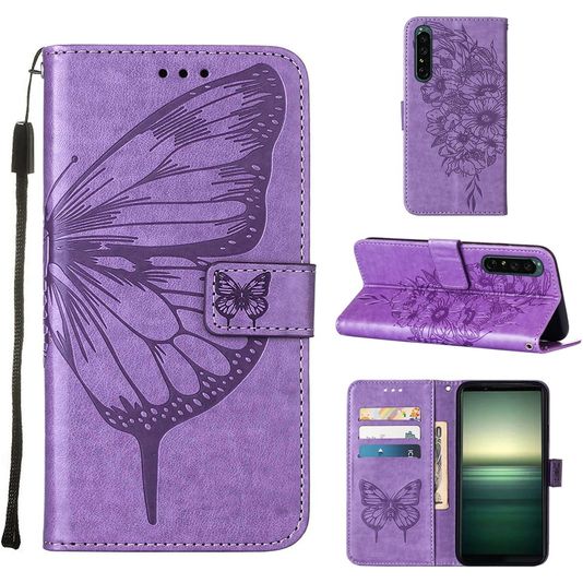 Mobigear Butterfly Sony Xperia 1 IV Hülle Klapphülle Geldbörse - Lila